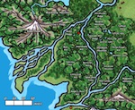 Route from the Holt to Bluestone Cave Holly H. Artist note: Bluestone Cave, located in a high valley in the mountains north of Elder Peak, is the tribe's "emergency evacuation site" in case of human invasion. The trip from the Holt's Dentrees up to Bluestone Cave takes about 3 days by wolf-back, via the route shown.