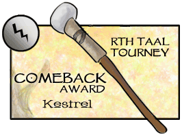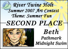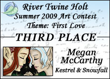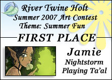 Each contest is hosted with a theme, and 1st, 2nd, and 3rd prize award icons will be given to the winners chosen by vote on the message boards; when items are tied, multiple awards are given. Non-members are often invited to participate in the regular River Twine art & fic contests, with a "People's Choice" award voted upon by non-members at the ElfQuest.com Scroll of Many Colors site.