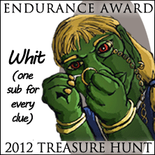 | + | Perseverance -- awarded to every player who submitted a piece of art or fic for each clue. | ||